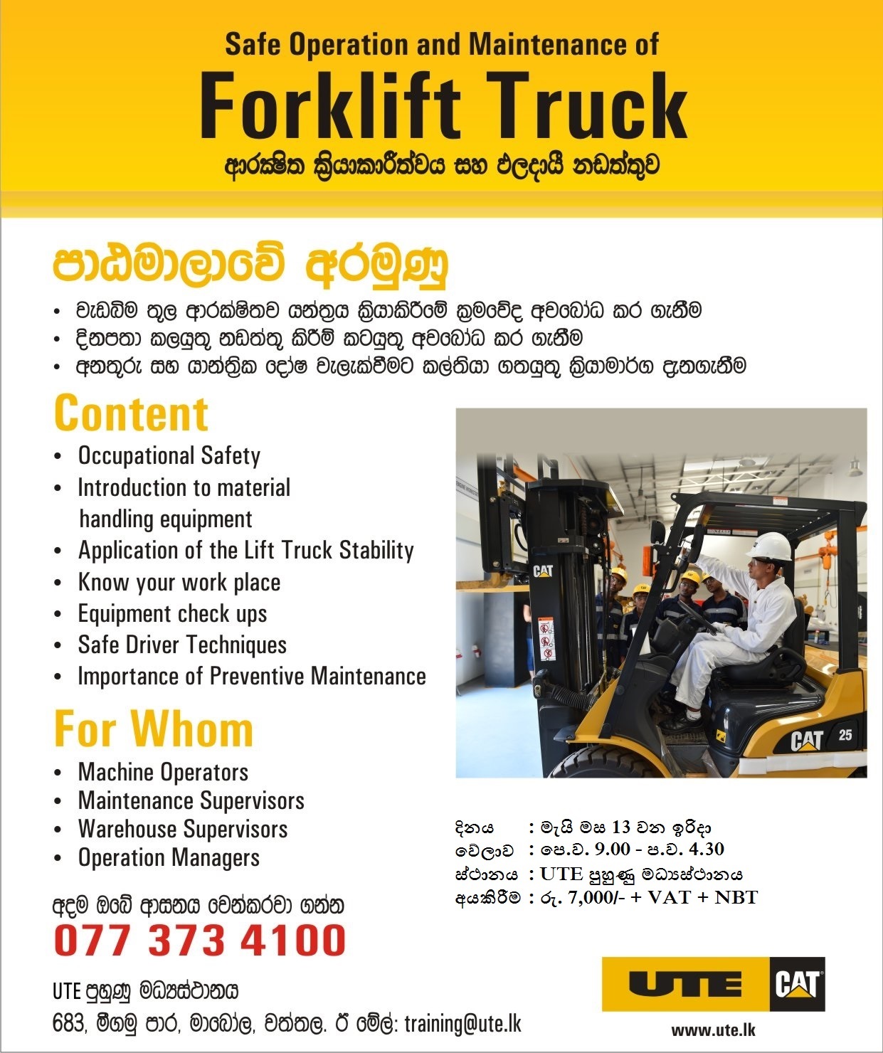 UTE TRAINING SOLUTIONSApplicationFacilitiesProgrammesContact Us UTE SOLUTIONSUTE CatEcologic SystemsConcrete PlantsWarehouse SolutionsWelding SolutionsRentalAir Compressor SolutionsMEP SolutionsSolar PowerProduct SupportUsed EquipmentTrainingFiltration Solutions